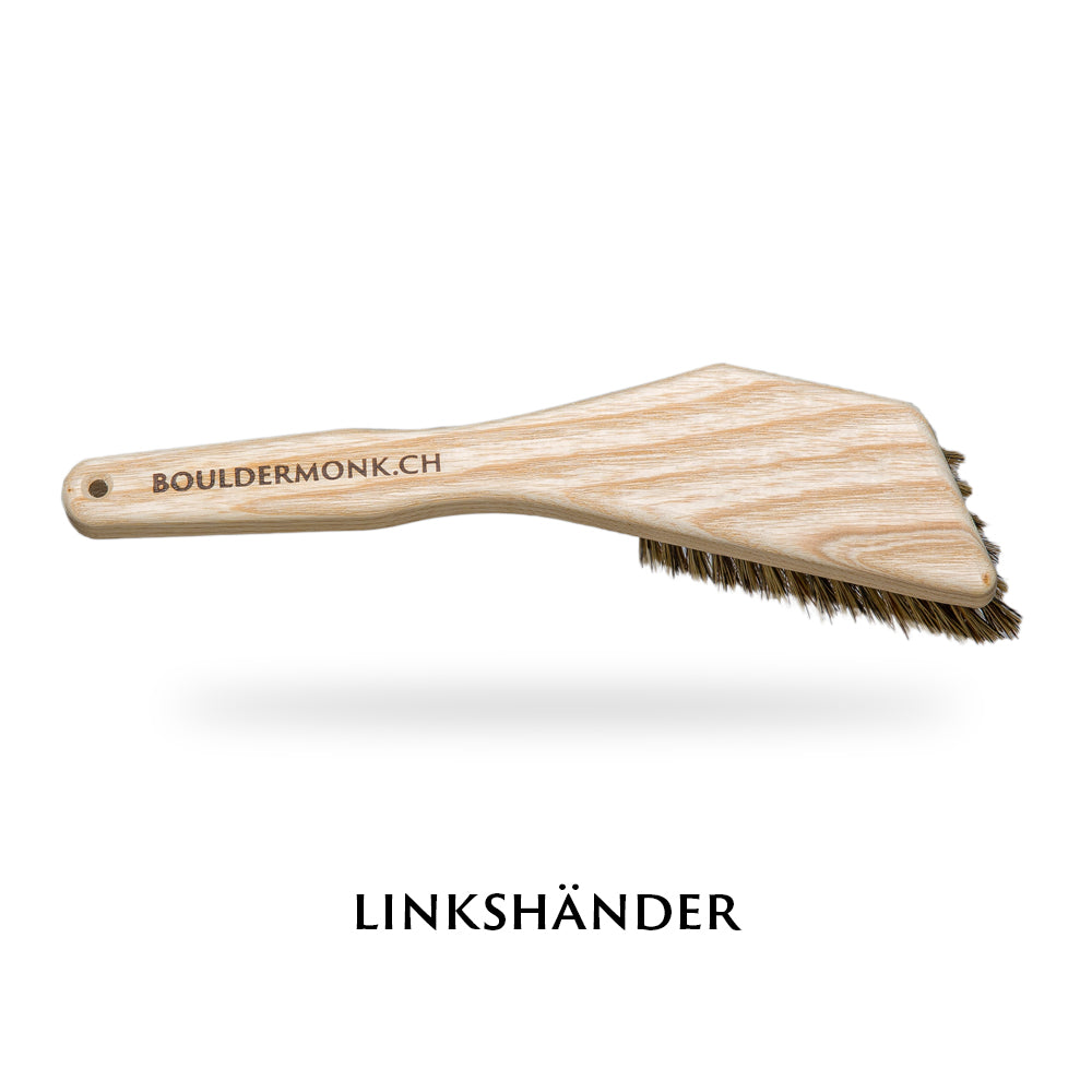 Mit “Slopi“ bekommst du Slopergriffe richtig gründlich sauber. Die dichten Borsten kleben förmlich am Fels und holen wirklich alle Chalk- und Schmutzreste aus den Steinporen heraus. Dank dem ergonomischen Griff liegt sie sehr angenehm in der Hand. Die abgewinkelte Form sorgt dafür, dass deine Fingerknöchel nicht am Felsen oder der Wand reiben. "Slopi" ist für Links- und Rechtshänder erhältlich. Die Boulderbürste ist aus robustem Eschenholz gefertigt und mit Naturhaarborsten bestückt. Ein langlebiges und zu 100% ökologisches Qualitätsprodukt.